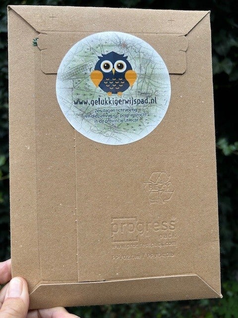 Routegids landkaart op weg naar GelukBidprentje met prachtig gedichtPelgrimspaspoort2 luxe anscihtkaartenVuilniszakje voor zwerfafval